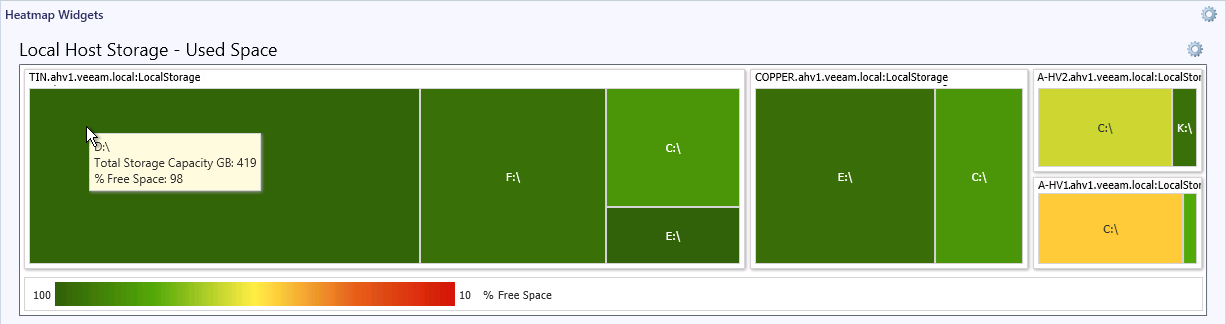 Veeam MP for Hyper-V also includes default dashboards with the preconfigured Heatmap widgets. For details, see Heatmap Dashboards.
