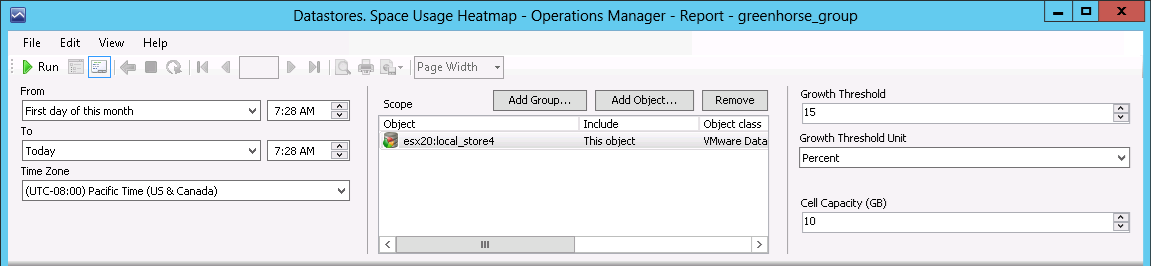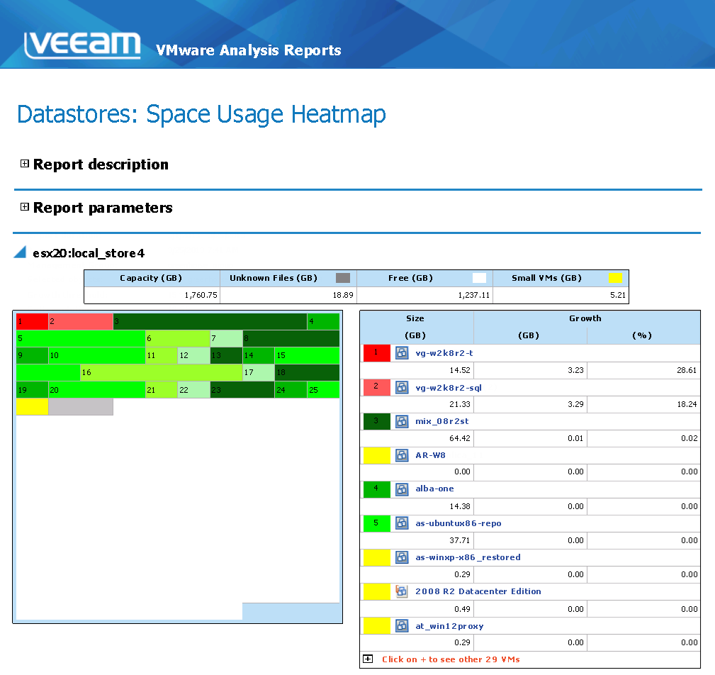 The report will draw the Heat Map that illustrates how much space every VM consumes on the datastore.