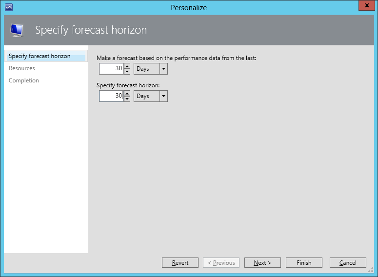 - The second parameter defines the forecast period. The calculated performance utilization trend is applied to the time interval that starts from the current date to the forecast horizon date.