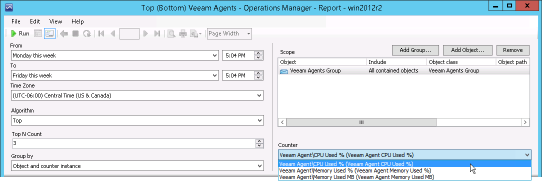 This is an archive version of the document. To get the most up-to-date information, see the current version. Step 7. Select Performance Counter To follow this example, in the Counter list, select the Veeam Agent\CPU Used % (Veeam Agent CPU Used %) counter.