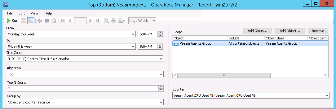 Select a list of backup proxies to include in the report. By default, the Scope section contains the Veeam Agents Group. To follow this example, leave the scope without changes.