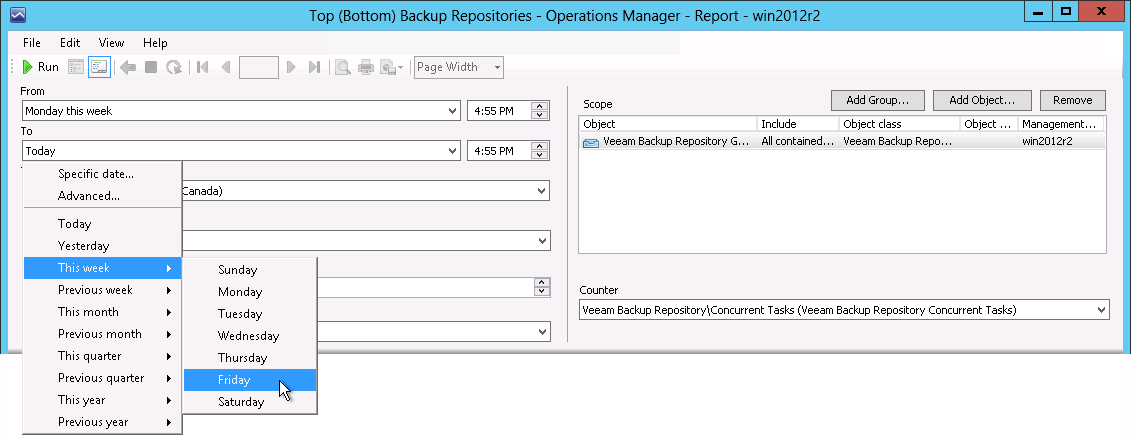 This is an archive version of the document. To get the most up-to-date information, see the current version. Step 2. Define Time Intervals Choose the time range for the report.From the From list, select This week > Monday. From the To list, select This week > Friday.