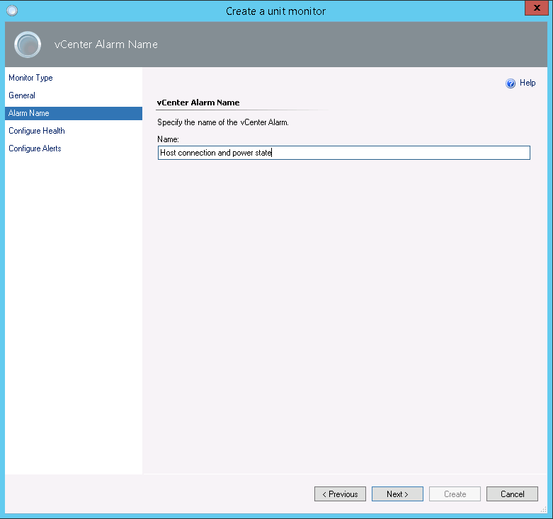 The example below describes how to create a monitor that tracks health states for all Host objects in your virtual infrastructure and generates alerts when the states change:
