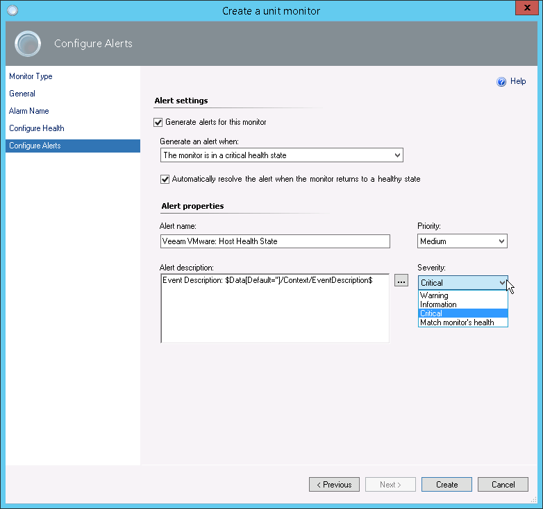 If you want Veeam MP views to capture alerts generated by the monitor, make sure that the monitor and alert names start with “Veeam VMware:”.