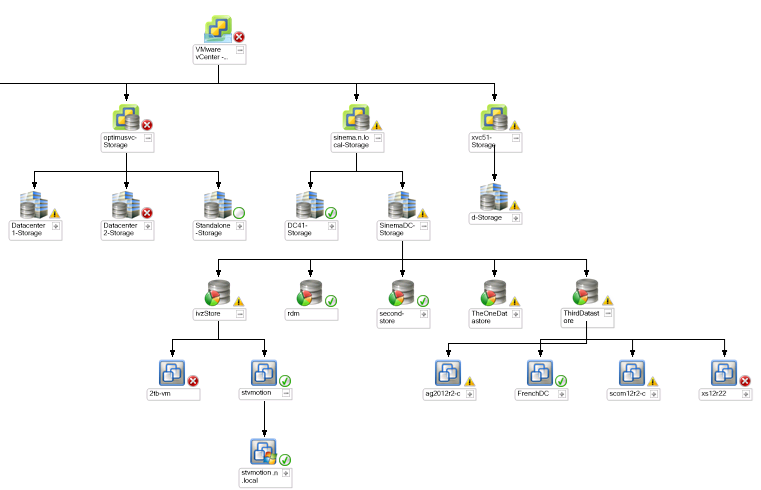 This is an archive version of the document. To get the most up-to-date information, see the current version. _vCenter Storage Topology vCenter Storage topology, showing a vCenter Server, datacenter, datastore cluster, datastores and contained VMs.