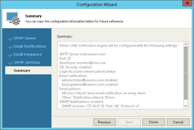 This is an archive version of the document. To get the most up-to-date information, see the current version. Step 5. Review Summary Review configured notification settings and click Finish.