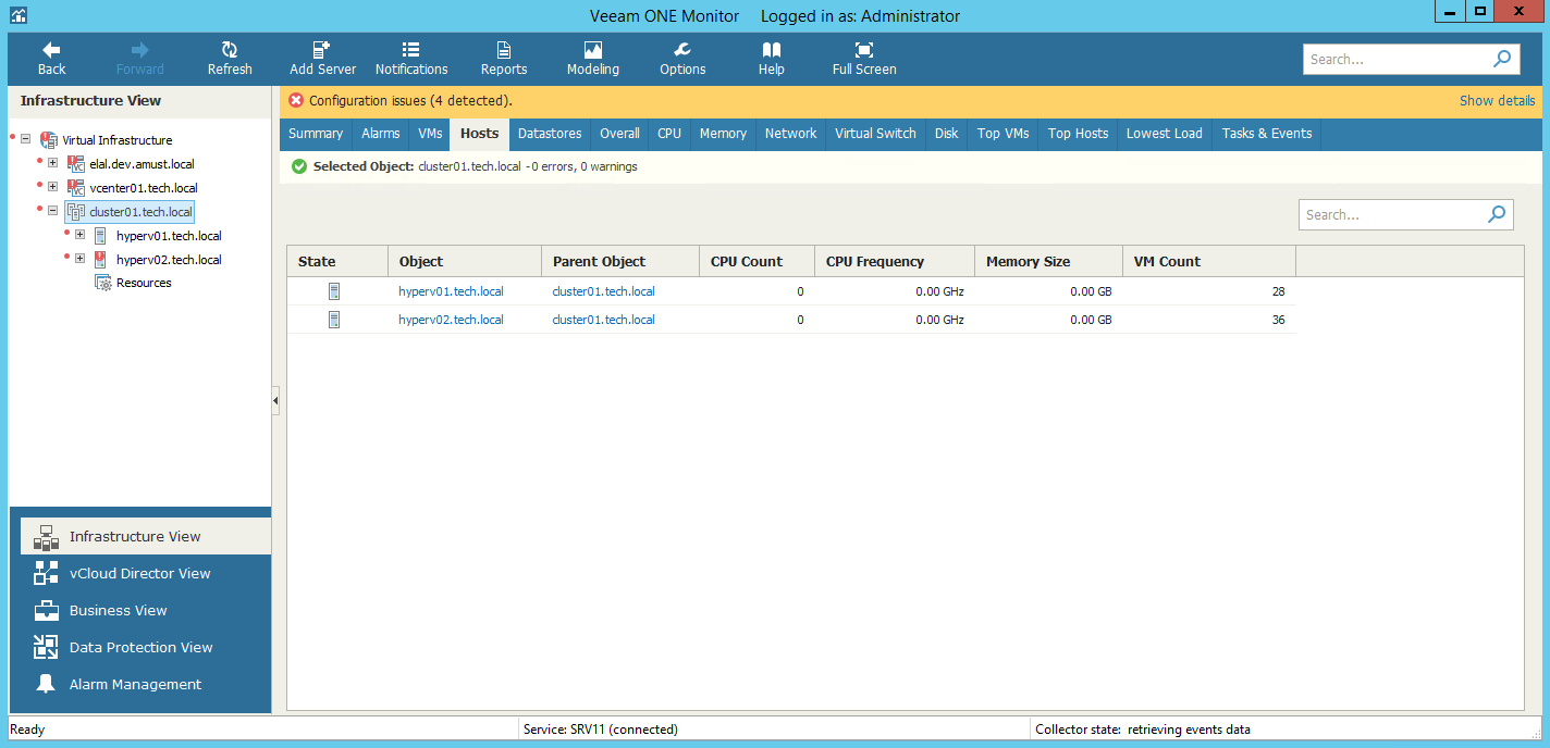 You can view the list of Microsoft Hyper-V hosts in your virtual infrastructure — on System Center Virtual Machine Manager or in a cluster.