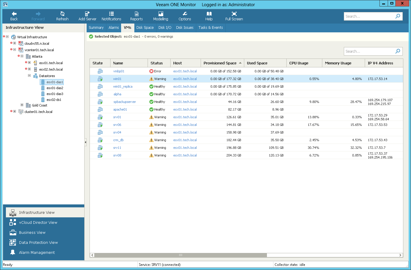 - Open Veeam ONE Monitor.