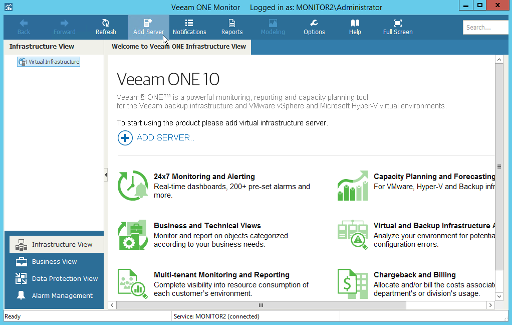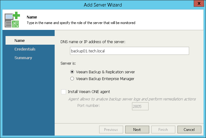 For this scenario, you will connect a Veeam Backup & Replication server. Optionally, you can also connect Veeam Backup Enterprise Manager to monitor all backup servers federated under Veeam Backup Enterprise Manager in a similar way.