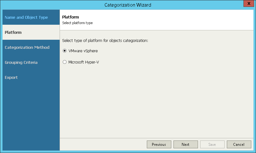 - At the Platform step of the wizard, select the VMware vSphere option.
