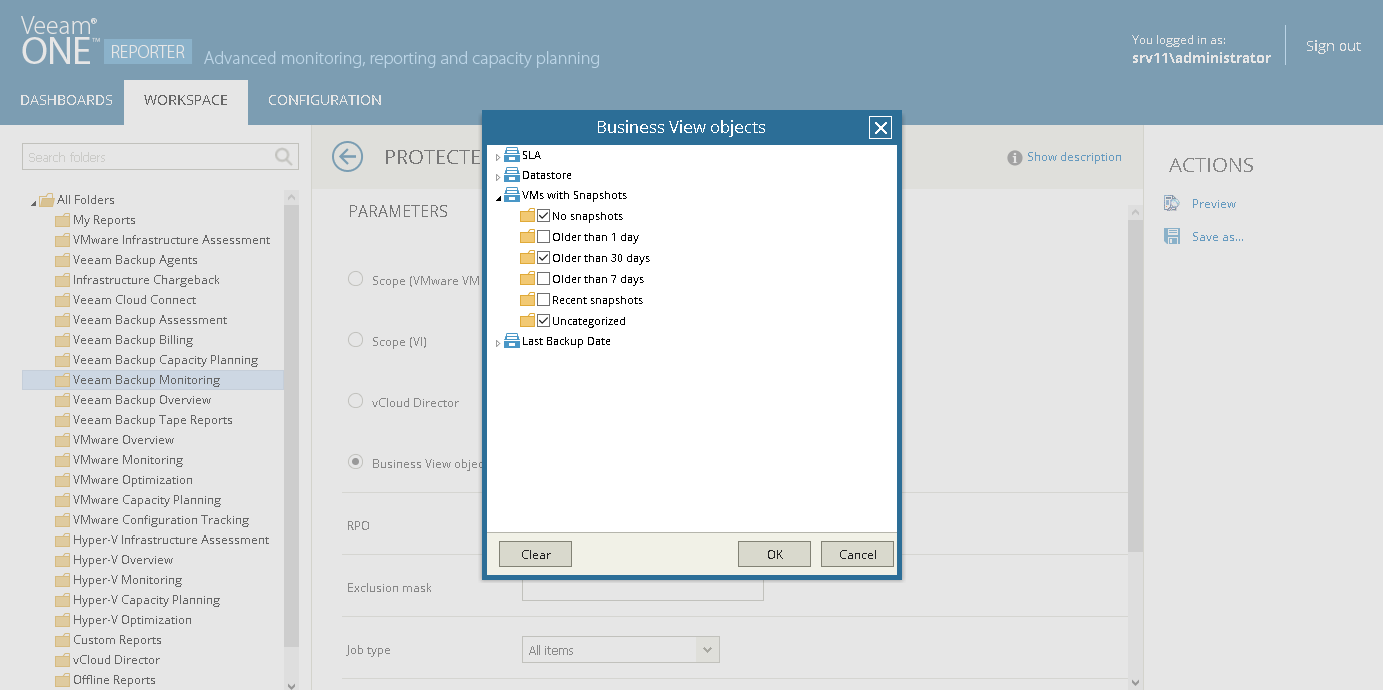 Veeam ONE Reporter will present data from the business point of view — that is, for the selected business groups.