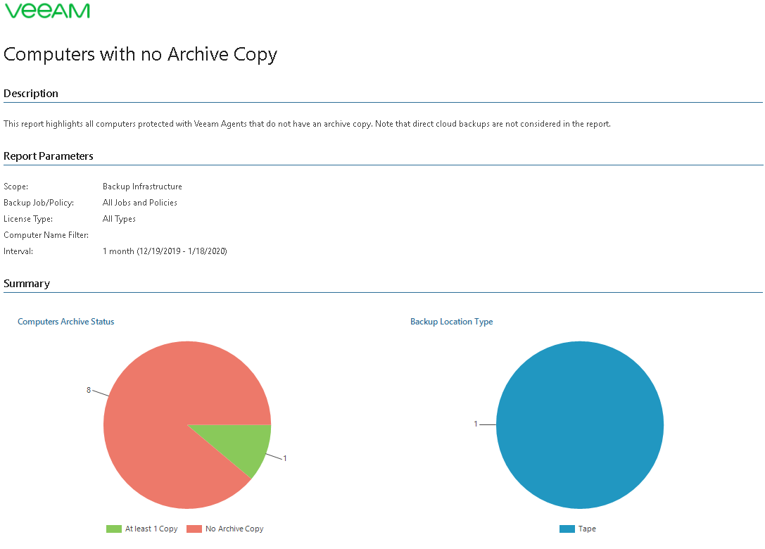 This report helps backup administrators check whether agents are protected with backup copies stored on secondary backup repositories and on tape.