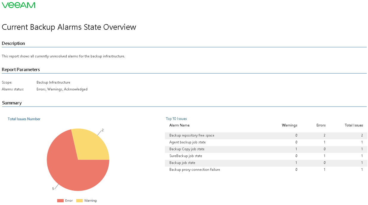 You can use this report to detect and resolve current and the most pressing issues with Veeam Backup & Replication.
