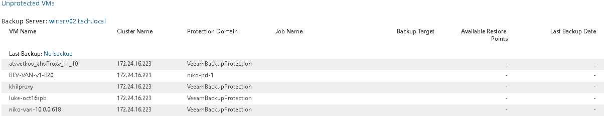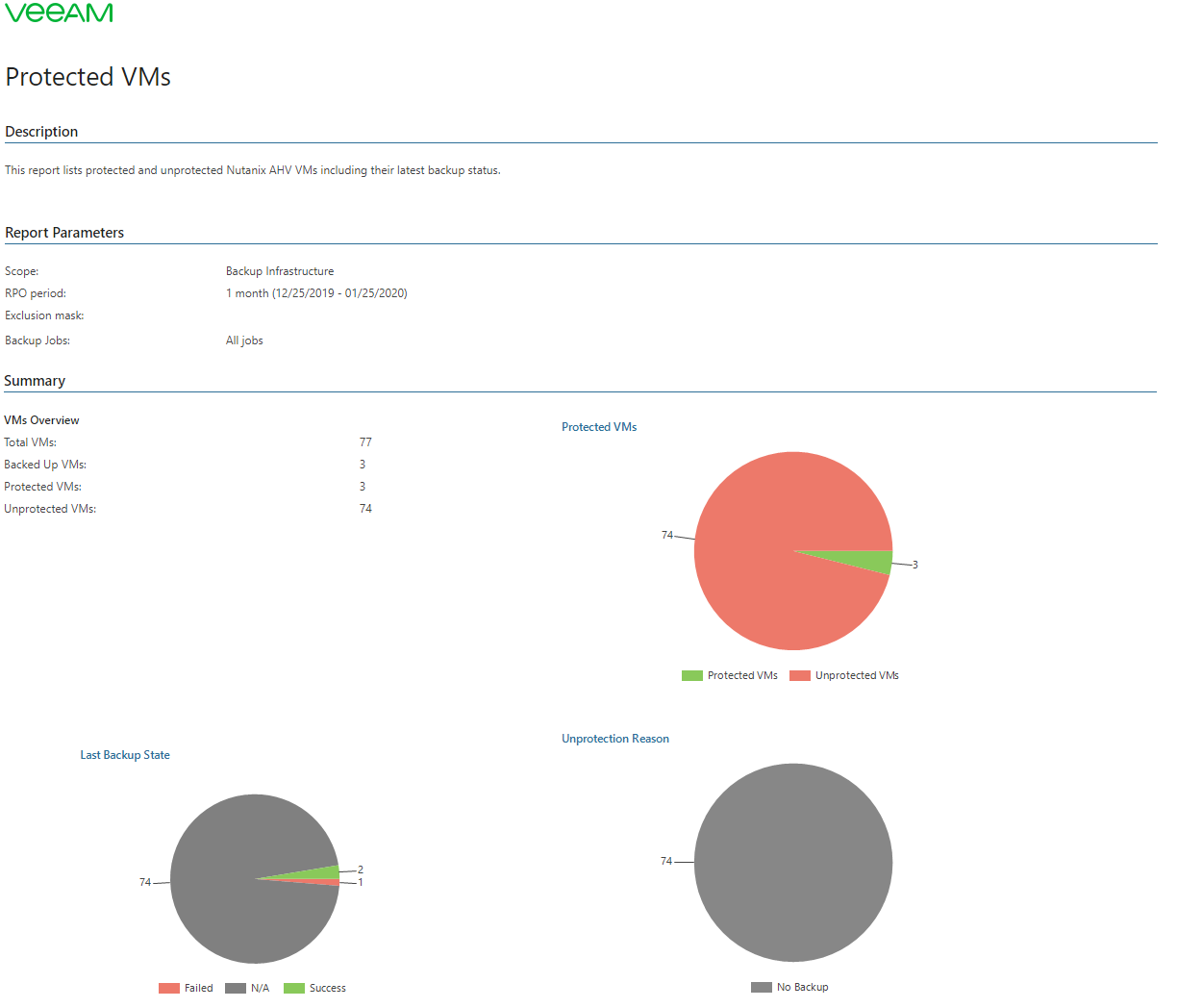 This report analyzes backup protection of Nutanix AHV VMs in your backup environment.
