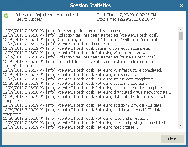 Every run of data collection initiates a new data collection session. Veeam ONE keeps record of tasks performed during data collection sessions and stores this information, so that you can view session details.