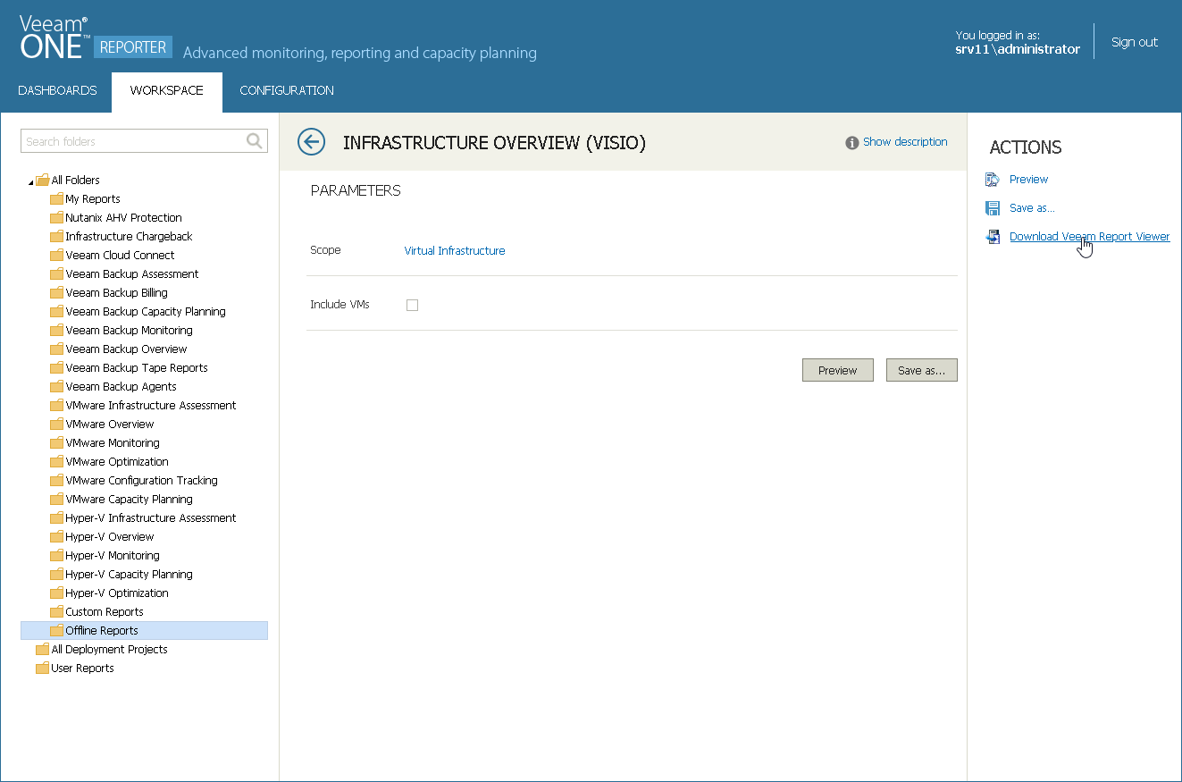 To view Veeam ONE offline reports, Veeam Report Viewer software is required.