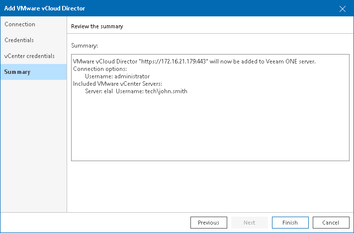 When you connect VMware vCloud Director, Veeam ONE also connects underlying vCenter Servers and initiates data import. vCenter Servers become available in the Infrastructure View, and you can work with them as with regular VMware vSphere infrastructure servers. If the vCenter Server attached to VMware vCloud Director is already connected, Veeam ONE will simply create an association between the VMware vCloud Director hierarchy and the vCenter Server.