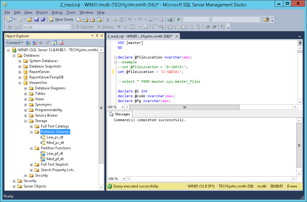 - In the object explorer pane, expand the Veeam ONE database > Storage > Partition Schemes and Partition Functions nodes and make sure the following nodes are available: