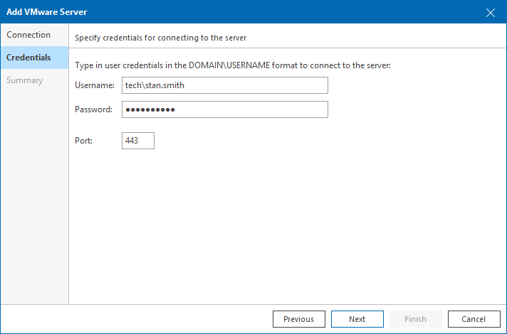 - Change the port number if required. By default, port 443 is used for communication with VMware vSphere servers.