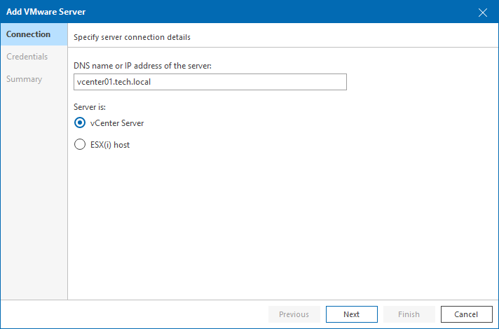 - Select whether the server is a vCenter Server or an ESX(i) host.
