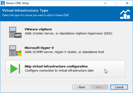 - At the Virtual Infrastructure Type step of the wizard, select Skip virtual infrastructure configuration.