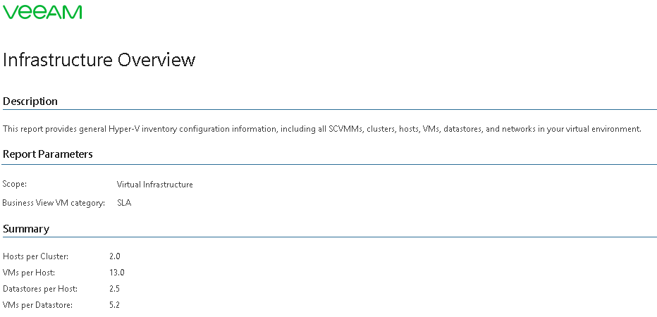 This report reveals the necessary Hyper-V inventory configuration specifics and allows you to evaluate the current state of your virtual environment.