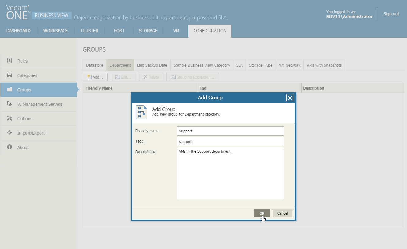 The Tag value is used to write categorization values from Veeam ONE Business View to vCenter Server. For details, see Synchronizing Groups with Tags.