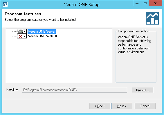 At the Advanced Deployment step of the wizard, you can choose which Veeam ONE components you would like to install. You can choose only one of the two suggested components (Veeam ONE Server or Veeam ONE Web UI), or install both of them at the same time. Note that if you choose to install only one component, you will need to repeat the installation procedure on another machine to install the other component (so that you can attain Veeam ONE functionality).