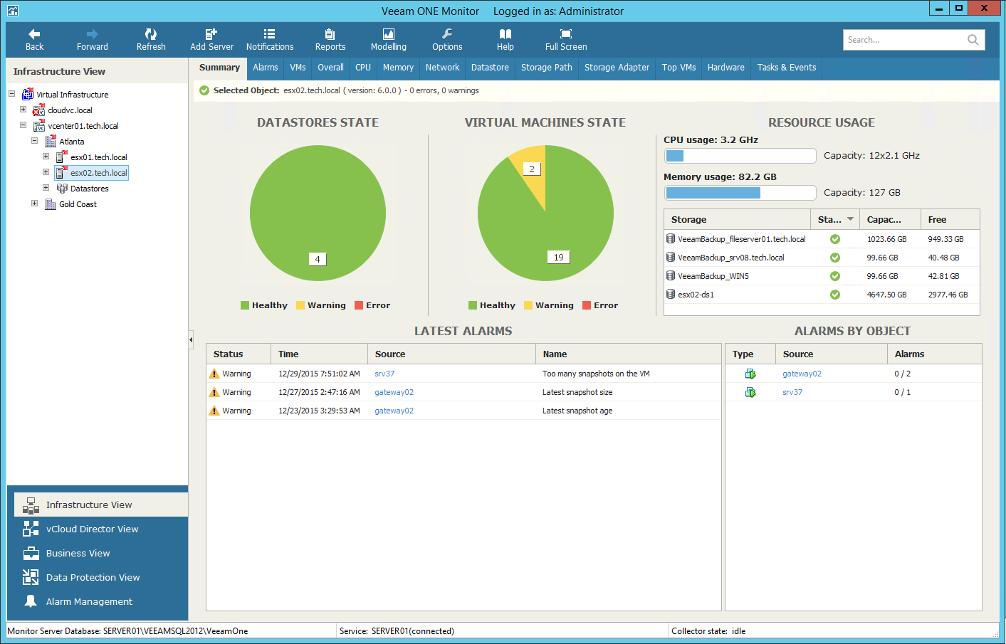 For details on working with alarms, see the Veeam ONE Working with Alarms Guide.