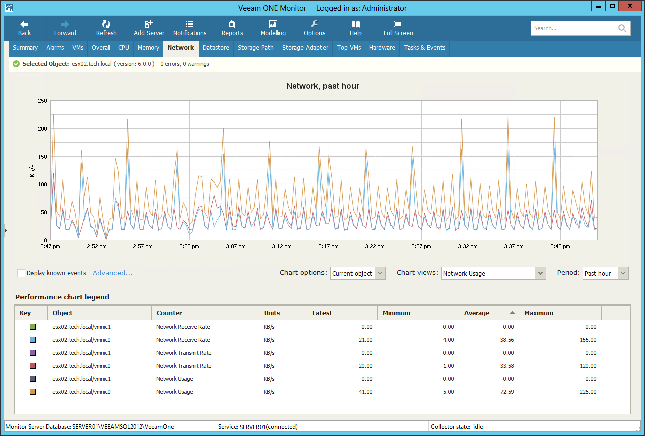 The information pane is the main working area used for managing alarms, viewing performance data and accomplishing other operations for monitoring your virtual and data protection environment. Tabs in the information pane allow you to switch between Veeam ONE Monitor dashboards. The set of available dashboards varies depending on the object that is selected in the inventory tree.