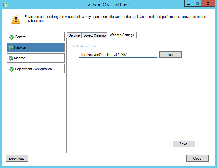 In some cases, the website URL may be changed — for example, if you changed the machine name where the Veeam ONE Web UI component runs. In such situation, you need to update the website URL in Veeam ONE configuration settings. Otherwise, you will not be able to launch reports directly from the Veeam ONE Monitor console.