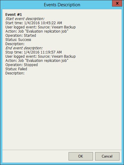 - Veeam Backup & Replication events