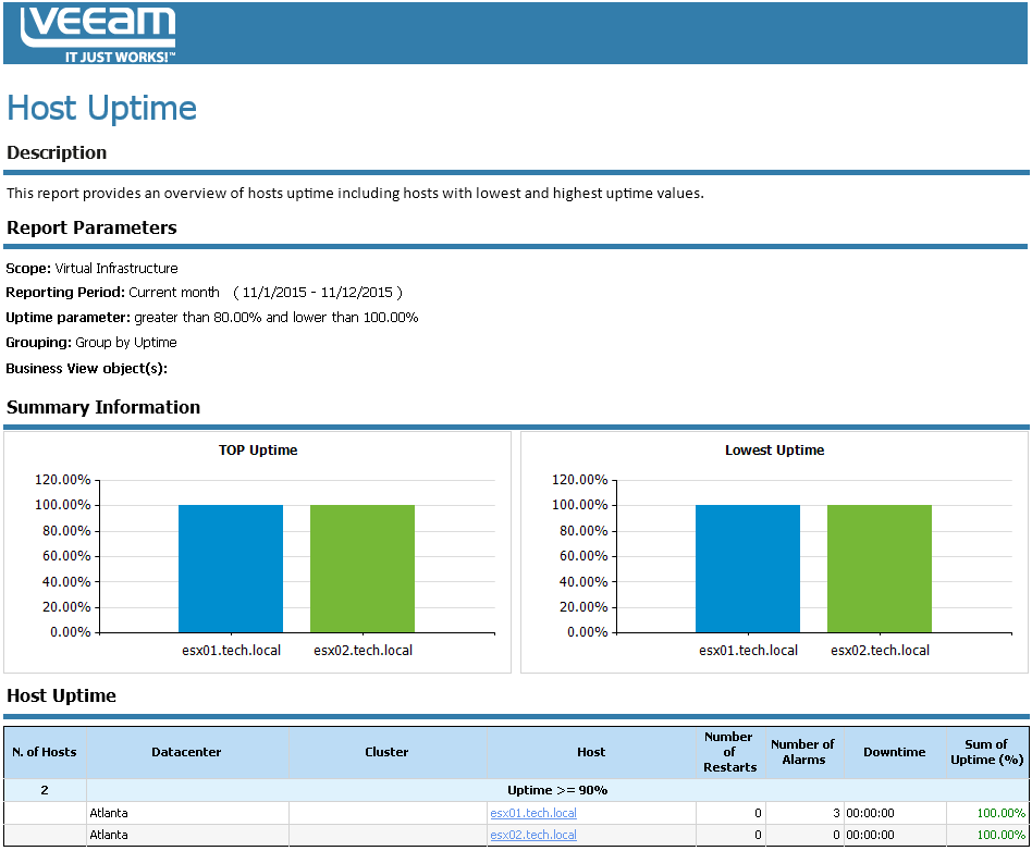This report helps you discover the most and the least utilized hosts in the environment to restore their efficiency and improve target ROI.