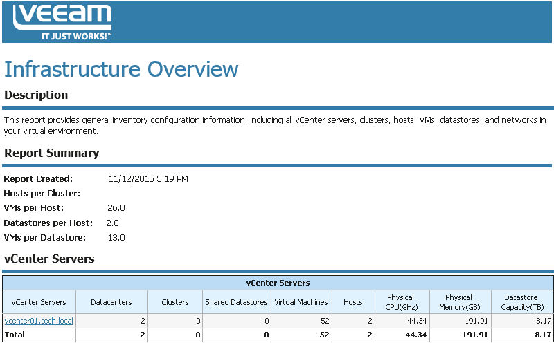 The report helps administrators track the state of monitored virtual infrastructure.