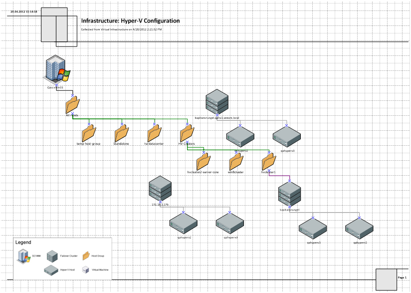 Below is an example of Visio diagram that displays Hyper-V infrastructure configuration.