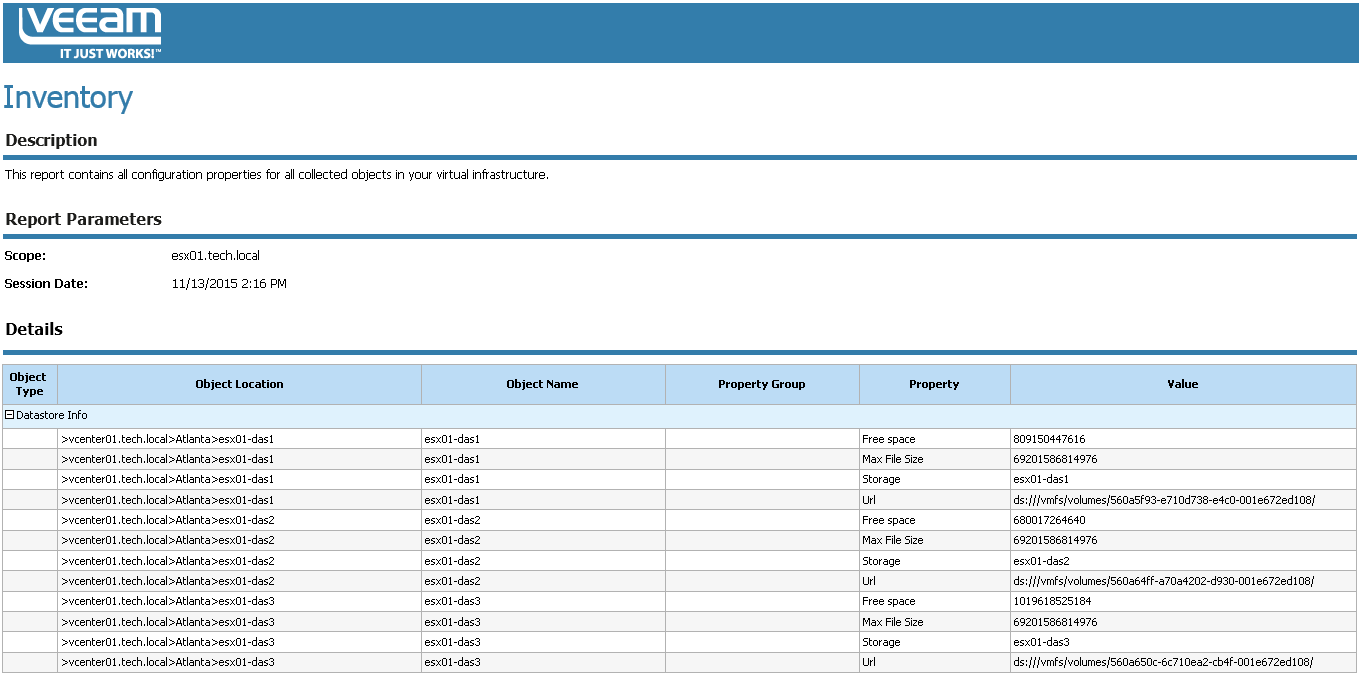 This report provides the most complete and up-to-date configuration information on all objects in your virtual environment.