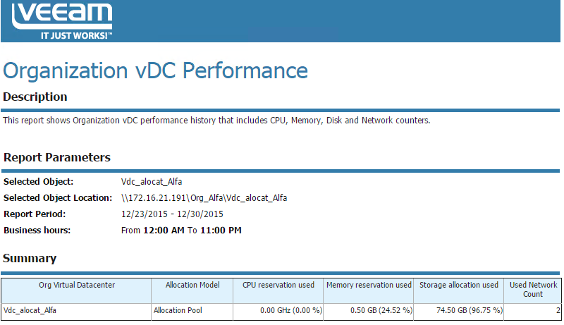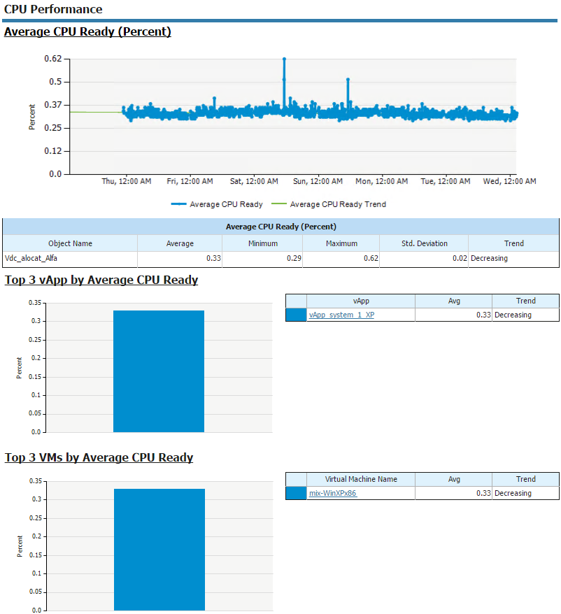 The report helps you identify organization virtual datacenters with performance issues, right-size resource provisioning and eliminate potential performance bottlenecks.