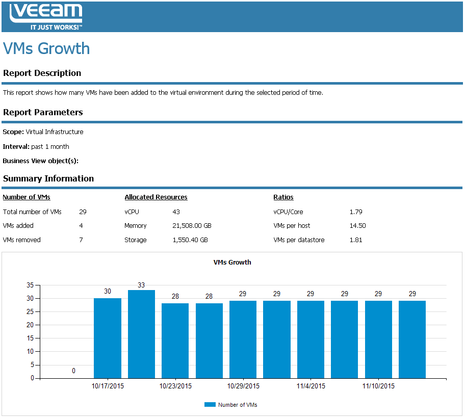 This report tracks how the number of VMs in your virtual environment has been changing during the reporting period.