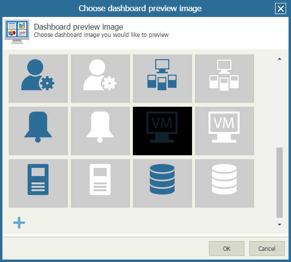 After you create a custom dashboard, you can select the preview image that will be used to depict the dashboard in the Dashboards section.