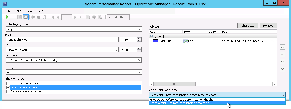 From the Chart Colors and Labels list, choose Random colors, no reference labels on the chart. The use of this option will make it easier to read the chart as every series will be drawn with its own color.