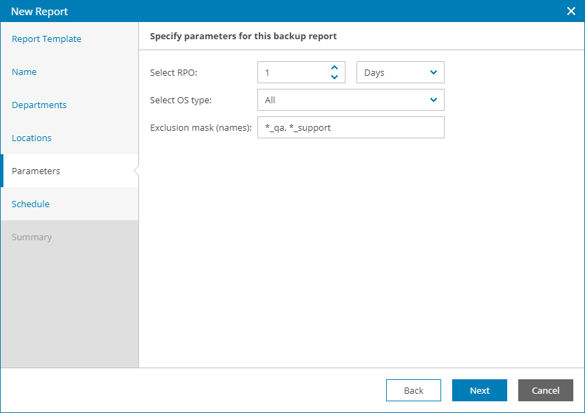 If you select more than one department at this step, Veeam Availability Console will create a separate report configuration for each selected department.