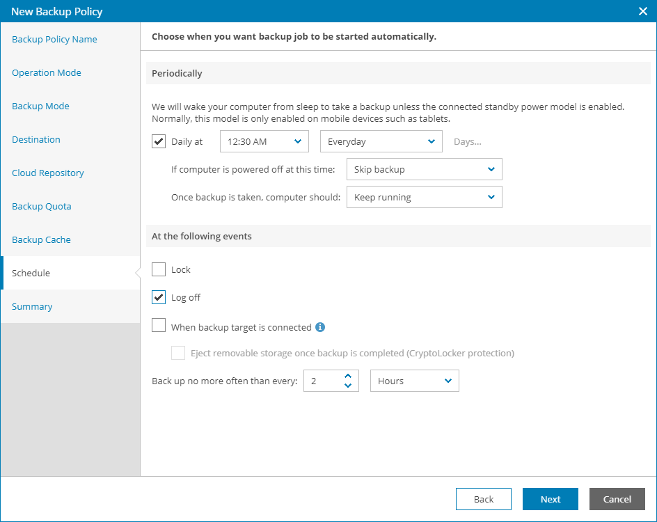 2. Select the action that Veeam backup agent must perform in case your computer is powered off at the time when the scheduled backup job must start: