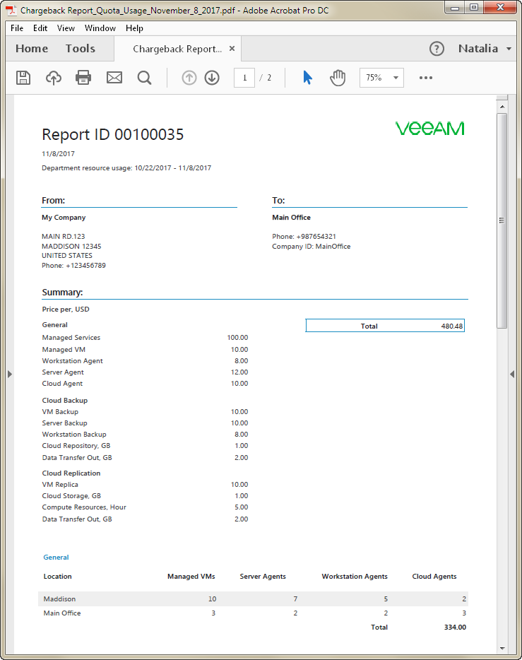Specify your company name and contact details in the company profile. This information will be displayed in the From section of chargeback reports.