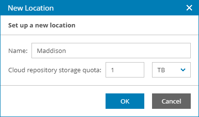 When you create a new location, the cloud repository storage quota of the Default location is decreased by the amount of the cloud repository storage quota set for the new location.