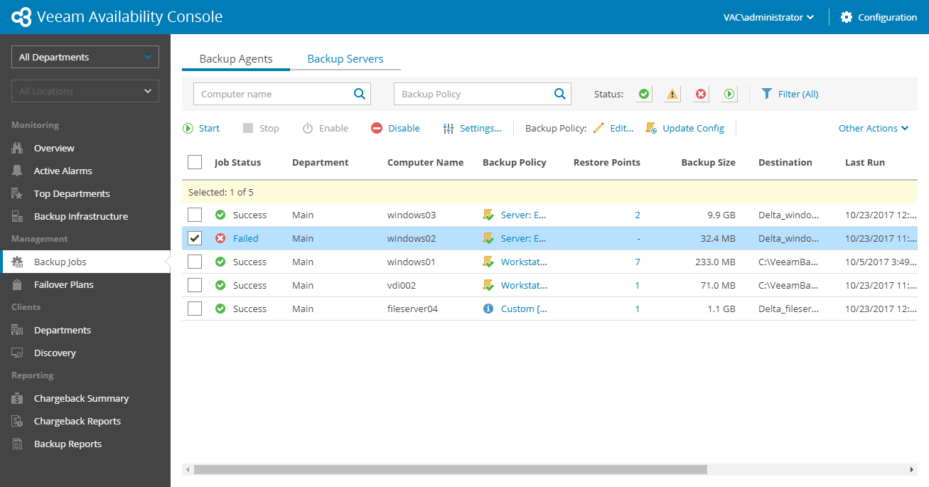 Veeam Availability Console will display a list of jobs for managed Veeam backup agents.