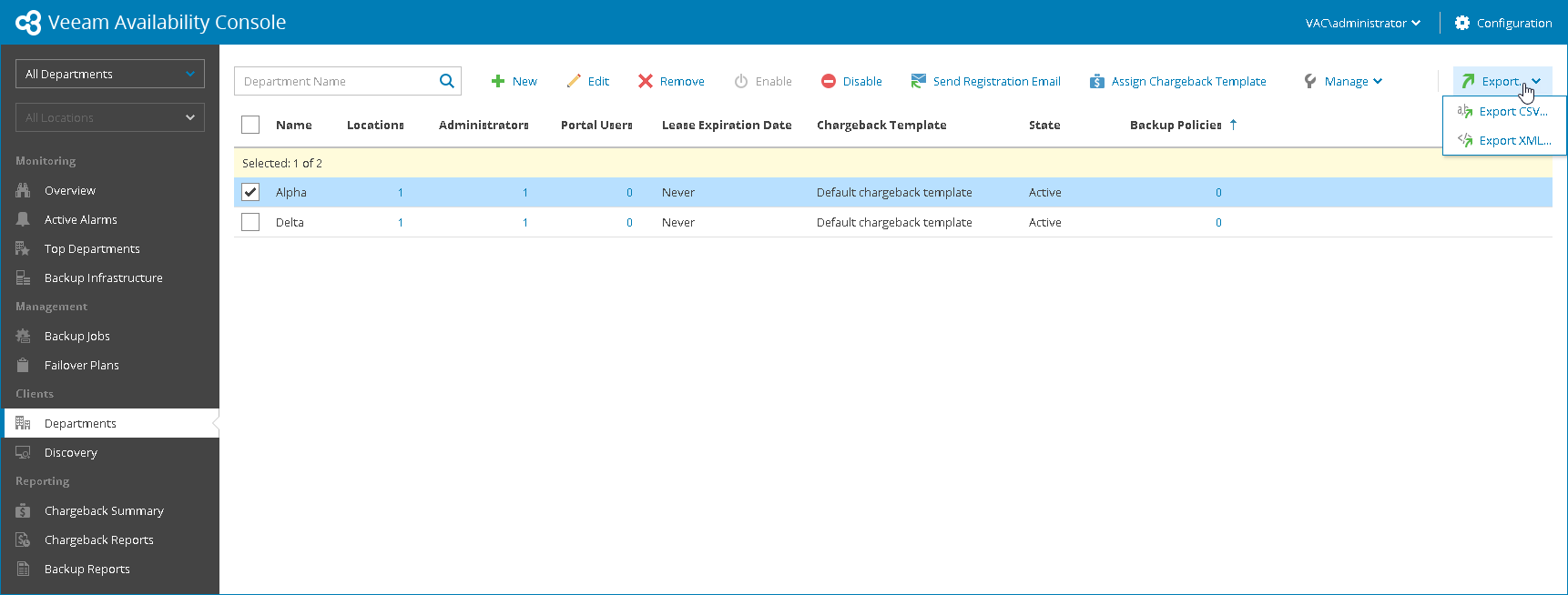 - Backup Policies — number of backup policies assigned to Veeam backup agents managed for a department