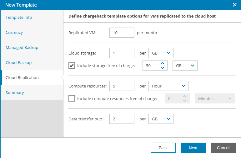 At the Cloud Replication step of the wizard, specify charge rates for resources consumed by cloud VM replicas: