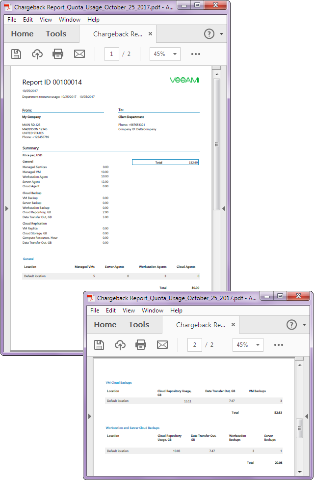 To calculate the cost of services provided to a department, you must generate a chargeback report. A chargeback report is a PDF document that shows the cost of consumed services in accordance with a chargeback template assigned to a department.