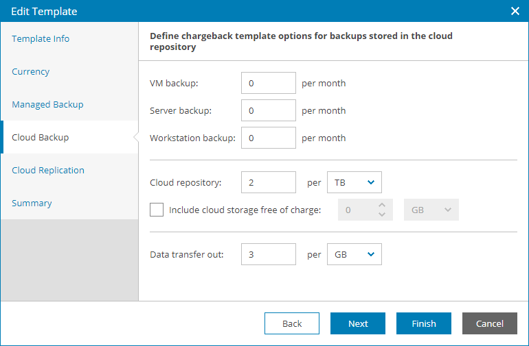 - Charge rate for 1 GB of backup data stored on a cloud repository: $2