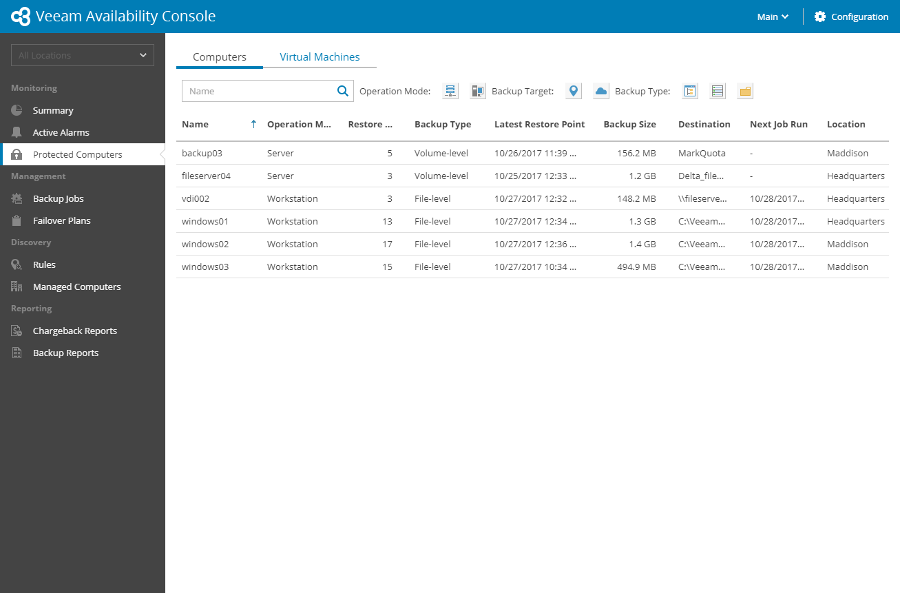 - Restore Points — number of restore points available in the backup chain for a managed computer.